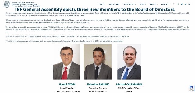 The International Road Federation (IRF), of which our Association is a member, determined 3 new Board Members at the General Assembly held on April 22, 2020.